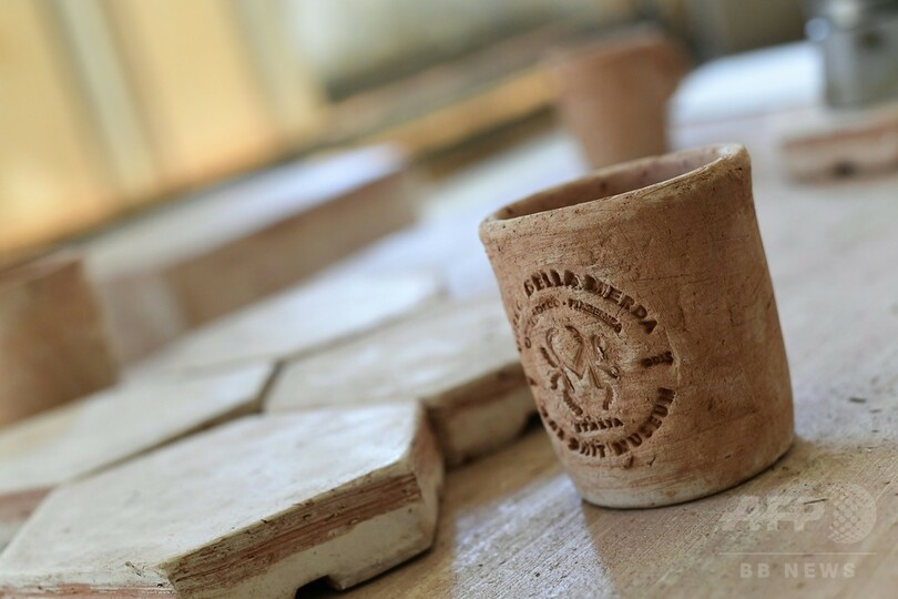 こうした製品は、ふんと、トスカーナ(Tuscan)地方で採れる粘土を混ぜた後に、「秘密」の製法を経て作り出される。「メルダコッタ」は赤粘土の素焼きの焼き物、テラコッタ(Terracotta)をもじって名づけられた。(c)AFP/Céline CORNU