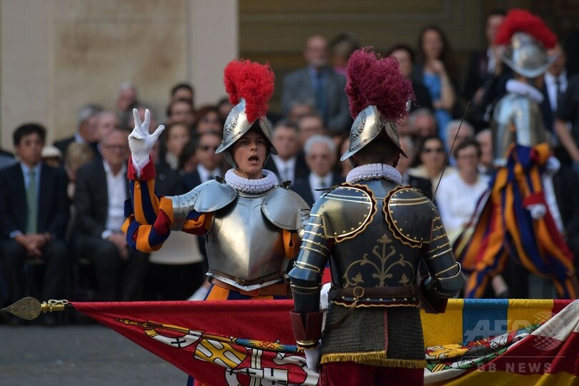 【5月7日 AFP】ローマ法王庁(バチカン)で法王の警護にあたるスイス衛兵(Swiss Guards)の新兵40人が6日、宣誓就任した。やりを持って法王に仕えるスイス衛兵の歴史は500年前にさかのぼる。