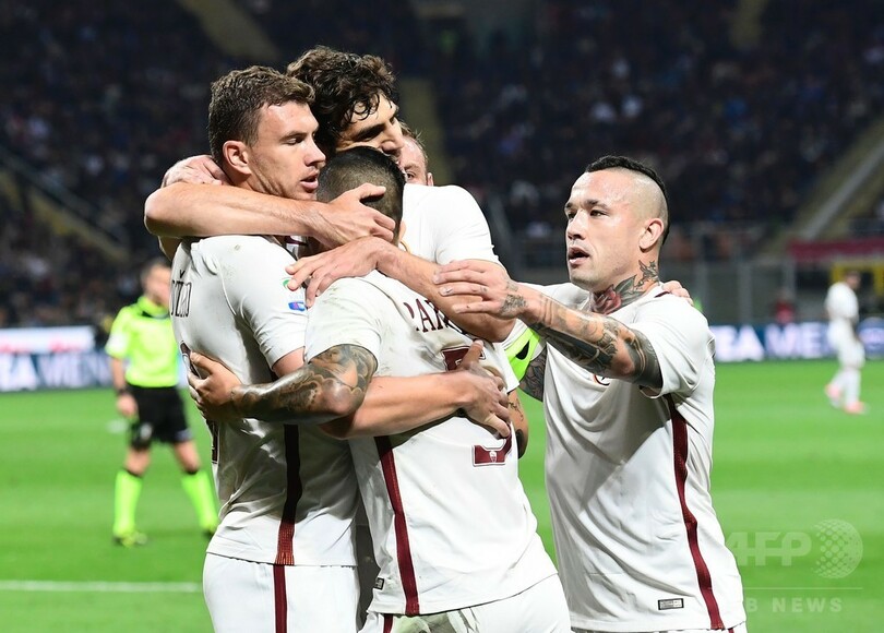 【5月8日 AFP】16-17イタリア・セリエAは7日、第35節の試合が行われ、ACミラン(AC Milan)と対戦したASローマ(AS Roma)は、エディン・ジェコ(Edin Dzeko)の2得点をはじめ、ステファン・エル・シャーラウィ(Stephan El Shaarawy)も古巣を相手にゴールを奪うなど4-1で快勝した。