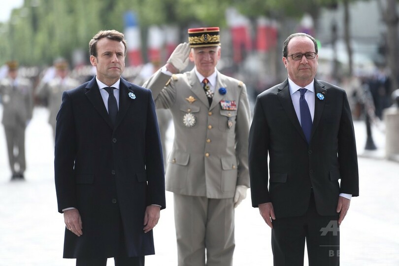 任期満了で退任するフランソワ・オランド(Francois Hollande)大統領が8日、パリで行われた第2次世界大戦(World War II)の戦勝記念日の式典に出席した際、現地テレビに対し明らかにした。