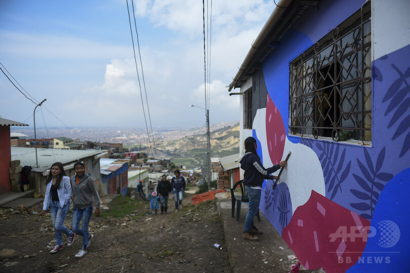 【5月16日 AFP】コロンビア首都ボゴタ(Bogota)南部のソアチャ(Soacha)地区で先月、内戦の犠牲者たちが「団結」の文字をモチーフとしたグラフィティを家の壁に描いた。フランス人アーティスト、セブ・トゥーサン(Seb Toussaint)さんのグローバルプロジェクト「Share The Word」(世界を共有しよう)の一環。
