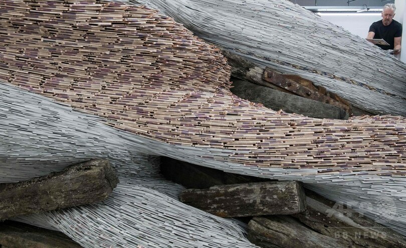 【5月10日 AFP】英ロンドン(London)のグリフィン・ギャラリー(Griffin Gallery)で9日、同国の現代美術賞「ターナー賞(Turner Prize)」ノミネート歴のあるデービッド・マック(David Mach)氏が自身のインスタレーション作品「インカミング(Incoming)」の制作を行った。同作品は重さにして20トン以上の新聞紙を使用しており、完成に2週間を要する。