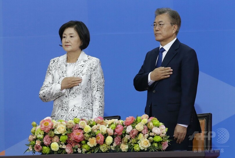 【5月10日 AFP】(更新・写真追加)韓国の大統領選挙で勝利した革新系政党「共に民主党(Minjoo Party)」の文在寅(ムン・ジェイン、Moon Jae-In)氏が10日、就任の宣誓を行い、その後、条件が整えば北朝鮮を訪問するとの意向を示した。