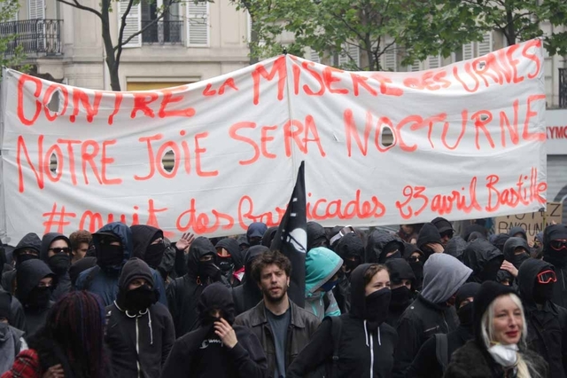 この写真は今月1日、パリで行われたメーデー(May Day)のデモで撮影したものだ。私がここパリで暮らすようになって、1年余りになる。故郷のアレッポ(Aleppo)で戦闘の写真を撮っていた際に片目を失い、同地を離れざるを得なくなった。