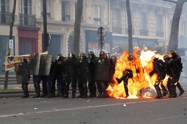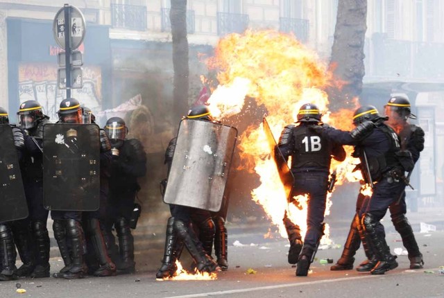 【5月18日 AFP】この写真、そしてこの警察官には心底動揺した。目の前で、人が火だるまになっていた。フランス・パリ(Paris)でだ。しかも彼に非はなかった。私はシリア出身だ。シリアでは、警察は市民を守る存在ではない。デモ隊がいれば、実弾を撃ち散らす。これに対し、フランスの警察官がしたことといえば、催涙ガスを放ったことくらいだ。攻撃を受けていたのは警察側だった。
