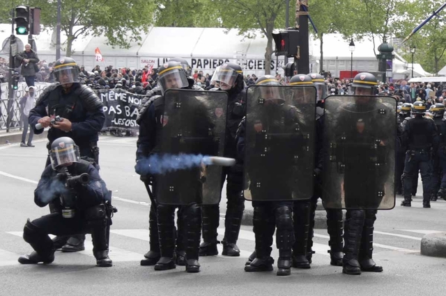この日も私はこの黒の集団を追った。また何かしでかすだろうと分かっていたからだ。私は同集団と警察の間に陣取った。右も左も撮影できるようにだ。撮影しながら、ここでは警察が被害者なのだということをはっきり見せたいと思った。一行は一方的に警察を攻撃していた。石やガラス瓶など、手当たり次第に投げつけていた。これに対し警察がしていたことといえば、催涙ガスで応戦するばかりだった。繰り返しになるが、分かってほしい。私はシリア出身だ。シリアといえば、警察が実弾で市民を撃つ国だ。だがここフランスの警察は、一切手を出さない。