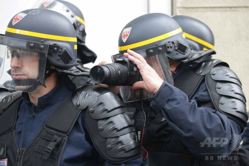 フランス首都パリのデモで、デモ隊を撮影する警察(2017年4月22日撮影)。(c)AFP/Zakaria Abdelkafi