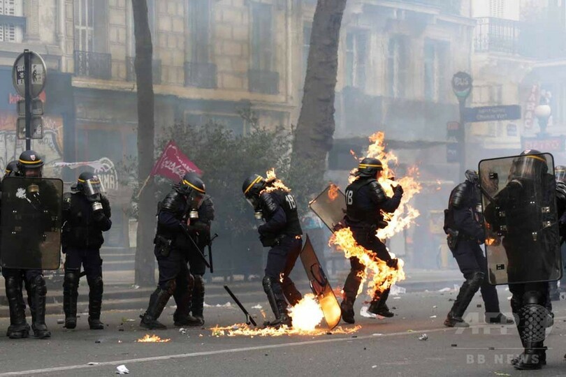 【5月18日 AFP】この写真、そしてこの警察官には心底動揺した。目の前で、人が火だるまになっていた。フランス・パリ(Paris)でだ。しかも彼に非はなかった。私はシリア出身だ。シリアでは、警察は市民を守る存在ではない。デモ隊がいれば、実弾を撃ち散らす。これに対し、フランスの警察官がしたことといえば、催涙ガスを放ったことくらいだ。攻撃を受けていたのは警察側だった。