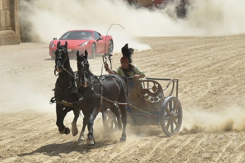 戦闘馬車vs.フェラーリ、『ベン・ハー』のレース再現 イタリア