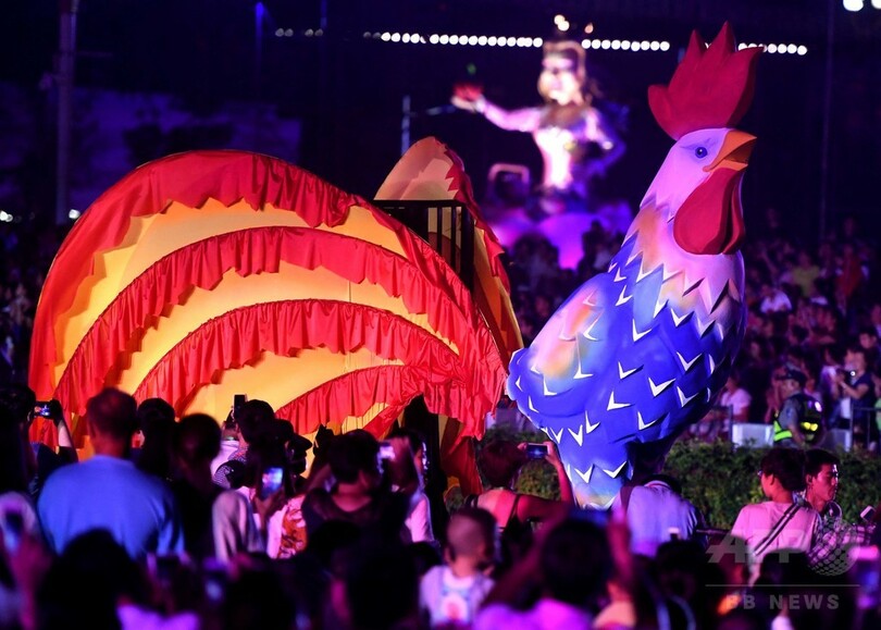 パレードに並ぶ18台の豪華な山車はすべてフランスで作られ、一旦解体してアモイまで運搬された。(c)CNS/JCM/AFPBB News