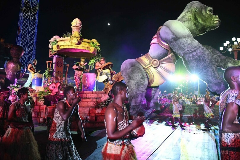 パレードに並ぶ18台の豪華な山車はすべてフランスで作られ、一旦解体してアモイまで運搬された。(c)CNS/JCM/AFPBB News