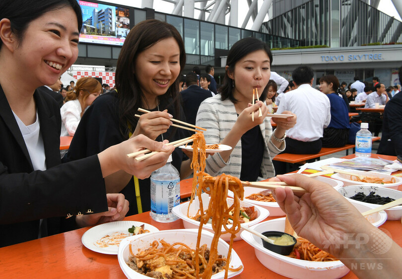 ナポリタンは、日本で独自に発展した料理。地域の特色もでやすいことから、各地の名物ナポリタンを掘り起こそうと2013年に第1回のイベントが開催された。2回目の今年は、13、14日の2日間開催し、来場者用に2万食分が用意されている。(c)AFPBB News
