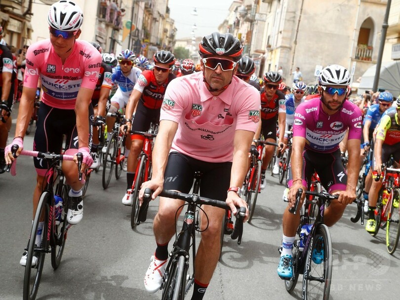 【5月13日 AFP】ジロ・デ・イタリア(Giro d'Italia 2017)は12日、第7ステージ(カストロヴィッラリからアルベロベッロ、224キロメートル)が行われ、米俳優のパトリック・デンプシー(Patrick Dempsey)がビンテージのピンクジャージー(マリア・ローザ)を着用しながら、集団とともにスタートラインまで走行して注目を浴びた。