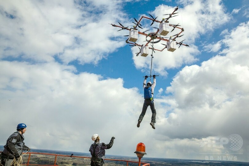 【5月13日 AFP】ラトビアのテクノロジー企業Aeronesが今週、強力なドローン(無人機)で人間を上空に持ち上げ、その後パラシュートでスカイダイビングを行って無事に着陸させる試験を行った。同社はこうした試みは世界初としている。