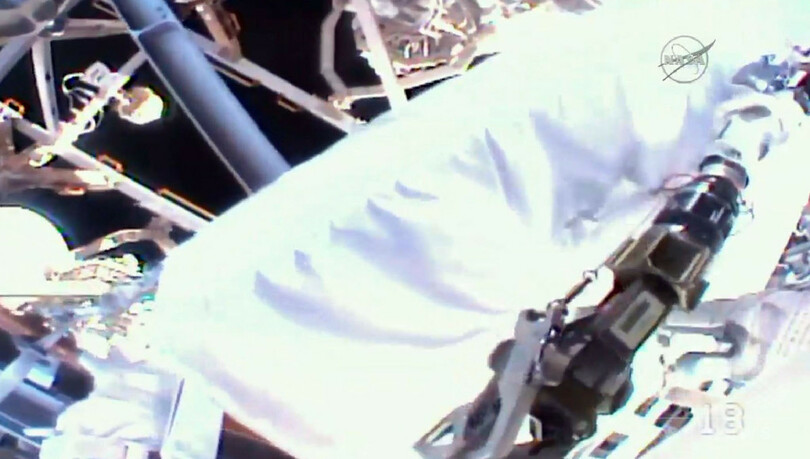 飛行士の宇宙服に電力を供給する装置に「わずかな水漏れ」が発見されたため、この日の作業開始は予定より少し遅れた。