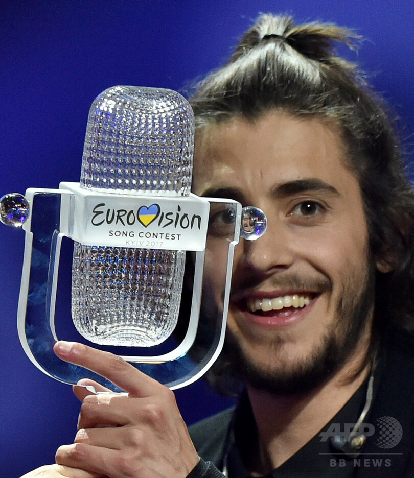 内戦下にあるドネツクから約500キロ離れた首都キエフでは13日、42か国からの参加者が競う歌謡祭「ユーロビジョン」が開かれ、ポルトガル代表のサルバドル・ソブラル(Salvador Sobral)さん(27)が優勝した。(c)AFP