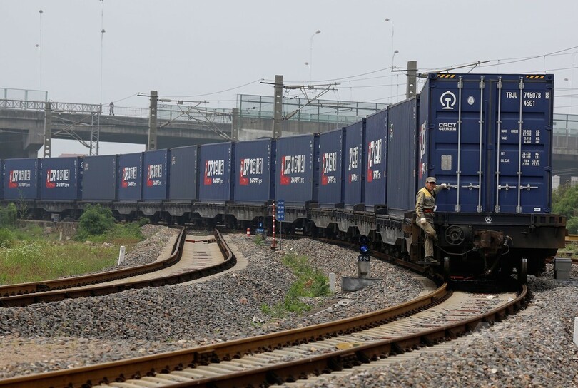 今年、中国鉄道総公司はコンテナ鉄道専用運搬車を増やし、中欧列車専用コンテナ、冷蔵コンテナなどの設備を導入した。また、「95306」国際輸送電子商取引プラットフォームを開設し、四川(Sichuan)省成都(Chengdu)市、浙江省義烏市、江西(Jiangxi)省贛州(Ganzhou)市など、地方都市から英国、ロシア、ベラルーシ、スイスへの運行を始めた。さらに、義烏市から英ロンドンまでの双方向運行を実現し、中国とヨーロッパの貿易促進、「一帯一路」沿線各国企業などにサービスを提供し、経済発展に重要な役割を果たしている。(c)CNS/JCM/AFPBB News
