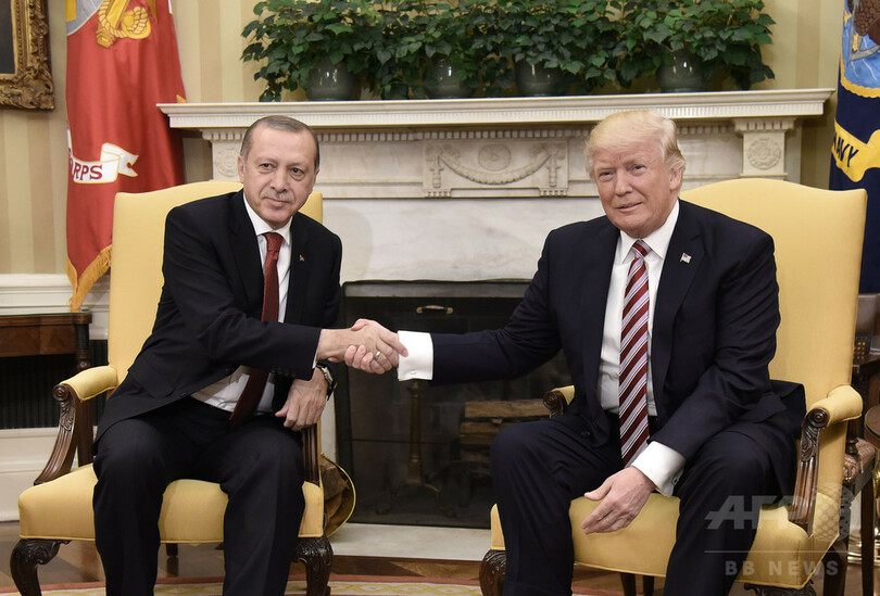 両氏は会談後、ツイッター(Twitter)で互いに友好的なツイートを投稿。トランプ氏はエルドアン氏を迎えられて「大変光栄」だと書き込み、エルドアン氏は「きょうの会談が両国の長期にわたる同盟・戦略的パートナーシップを強化すると確信している」と応じた。(c)AFP/Dave Clark