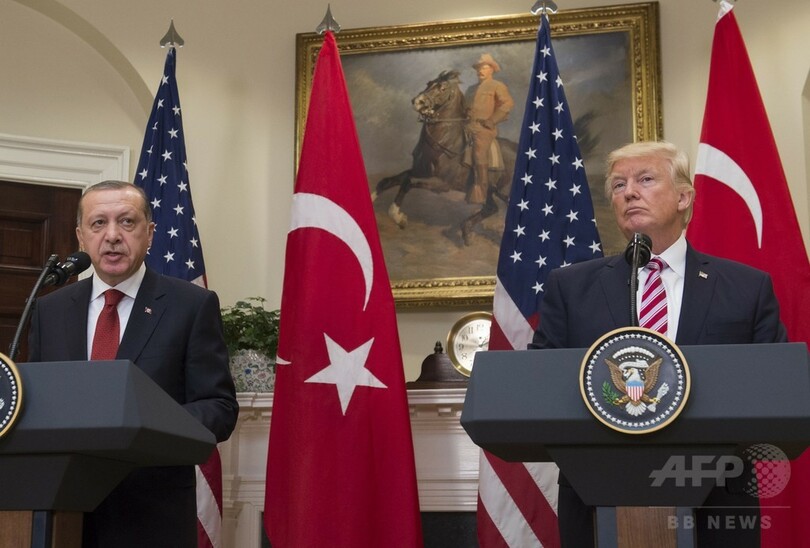 【5月17日 AFP】ドナルド・トランプ(Donald Trump)米大統領とトルコのレジェプ・タイップ・エルドアン(Recep Tayyip Erdogan)大統領が16日、ホワイトハウス(White House)で会談した。共同記者会見でエルドアン氏は、シリアでイスラム過激派組織「イスラム国(IS)」と戦うクルド人民兵組織に対する米政府の武器供与に改めて反発。一方で両氏は両国間の緊張緩和に取り組む意向も示した。