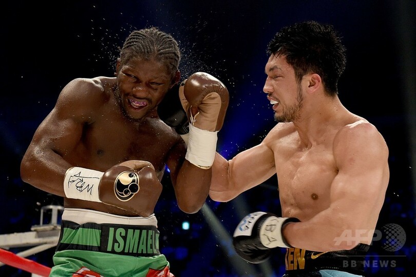 有明では同日、ほかにも世界タイトルマッチが2試合行われ、WBC世界フライ級タイトルマッチ12回戦では比嘉大吾(Daigo Higa)が、WBC世界ライトフライ級タイトルマッチ12回戦では拳四朗(Ken Shiro)が、それぞれ王座を獲得した。(c)AFP