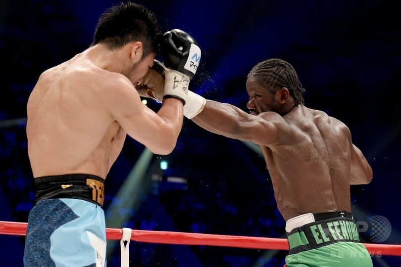 有明では同日、ほかにも世界タイトルマッチが2試合行われ、WBC世界フライ級タイトルマッチ12回戦では比嘉大吾(Daigo Higa)が、WBC世界ライトフライ級タイトルマッチ12回戦では拳四朗(Ken Shiro)が、それぞれ王座を獲得した。(c)AFP