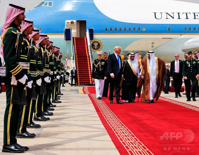 【5月20日 AFP】就任後初の外遊に出発した米国のドナルド・トランプ(Donald Trump)大統領は20日、最初の訪問地サウジアラビアの首都リヤド(Riyadh)に到着した。