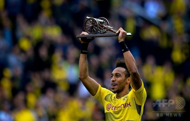 前半に見事なボレーシュートを決めたオーバメヤンは、後半にはPKを決めてリーグ戦のゴール数を31に伸ばし、バイエルン・ミュンヘン(Bayern Munich)のロベルト・レワンドフスキ(Robert Lewandowski)との争いを制し、自身初となる得点王のタイトルを獲得した。