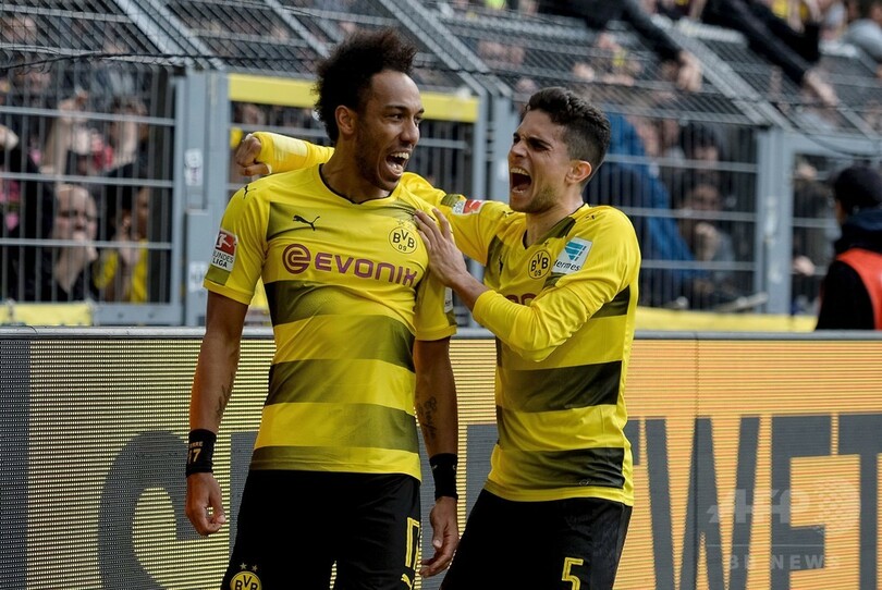 前半に見事なボレーシュートを決めたオーバメヤンは、後半にはPKを決めてリーグ戦のゴール数を31に伸ばし、バイエルン・ミュンヘン(Bayern Munich)のロベルト・レワンドフスキ(Robert Lewandowski)との争いを制し、自身初となる得点王のタイトルを獲得した。