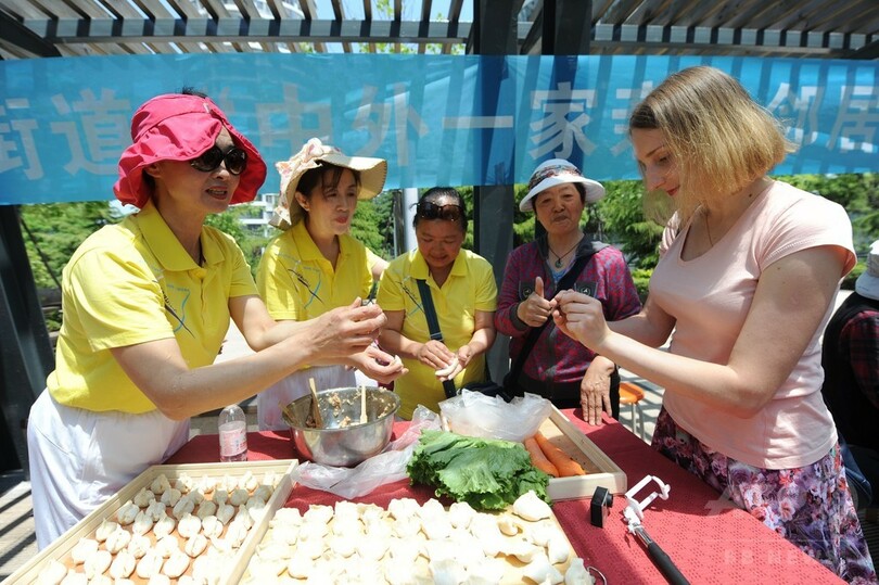 青島市・市南区の珠海路(Zhuhailu)街道では、多くの外国人「隣人たち」が祭りに参加した。ちまきや餃子を作り、切紙細工や中国拳法を学び、ステージで中国文化のパフォーマンスを披露するなど、中国文化、中国の伝統文化と西洋文化の相互理解を深めた。(c)CNS/JCM/AFPBB News