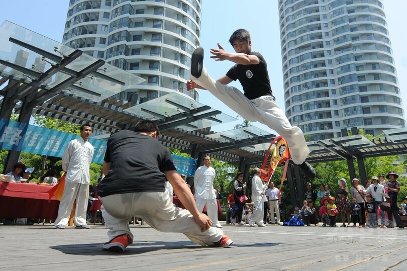青島市・市南区の珠海路(Zhuhailu)街道では、多くの外国人「隣人たち」が祭りに参加した。ちまきや餃子を作り、切紙細工や中国拳法を学び、ステージで中国文化のパフォーマンスを披露するなど、中国文化、中国の伝統文化と西洋文化の相互理解を深めた。(c)CNS/JCM/AFPBB News