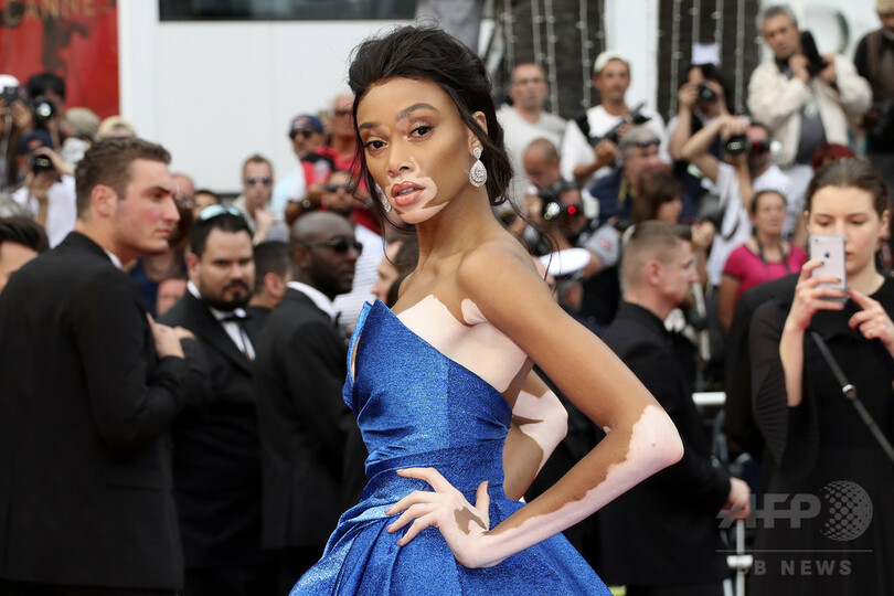 尋常性白斑の美しくも個性的な肌を武器にトップモデルとして活躍するウィニーだが、レッドカーペットでも堂々としたポージングを見せ、その存在感を世界に見せつけた。(c)MODE PRESS