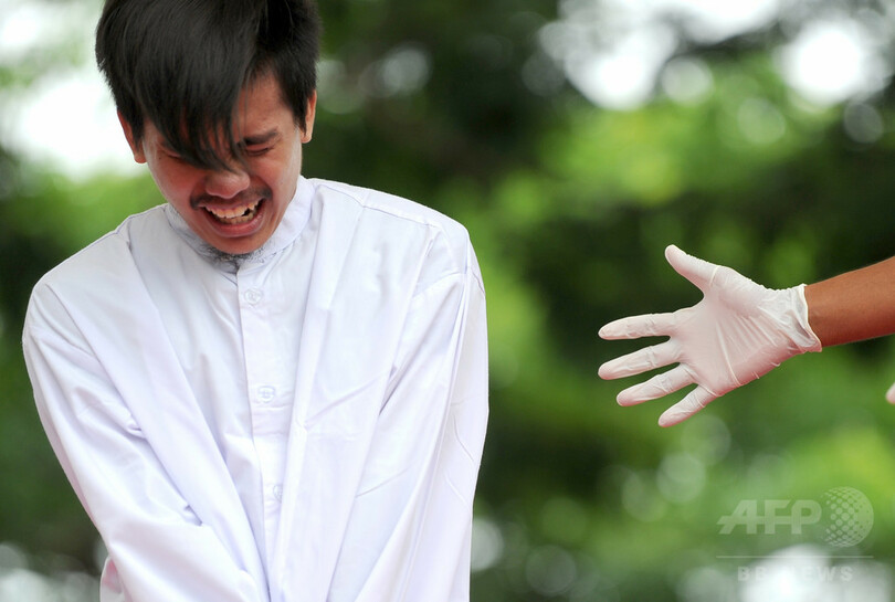 【5月23日 AFP】インドネシア・アチェ(Aceh)州の州都バンダアチェ(Banda Aceh)で23日、同性同士で性行為をし、シャリア(イスラム法)に違反したとして有罪判決を受けた男性2人に対し、それぞれ83回の公開むち打ち刑が執行された。アチェ州はインドネシアで唯一シャリアが適用されているが、同性カップルにこのような処罰が行われたのは初めて。