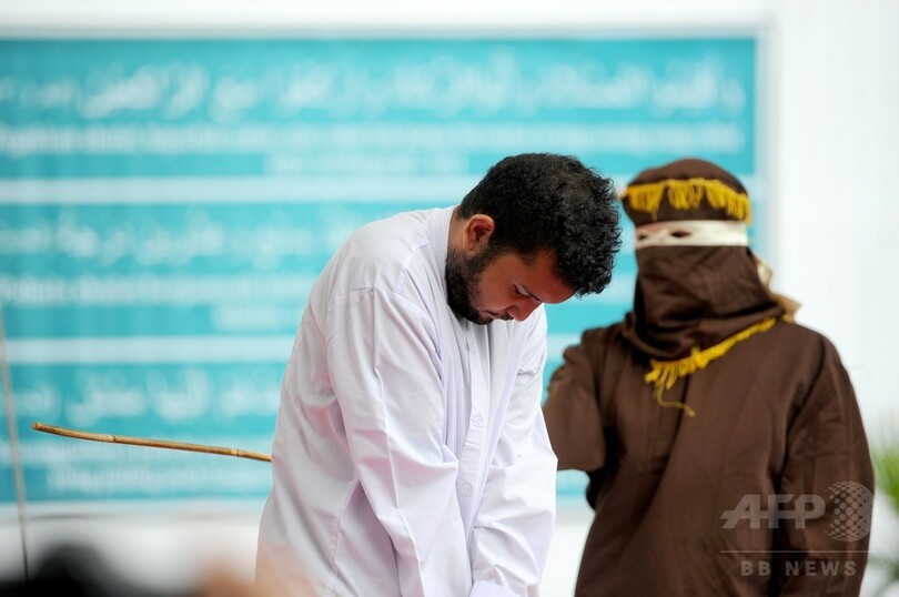 【5月23日 AFP】インドネシア・アチェ(Aceh)州の州都バンダアチェ(Banda Aceh)で23日、同性同士で性行為をし、シャリア(イスラム法)に違反したとして有罪判決を受けた男性2人に対し、それぞれ83回の公開むち打ち刑が執行された。アチェ州はインドネシアで唯一シャリアが適用されているが、同性カップルにこのような処罰が行われたのは初めて。