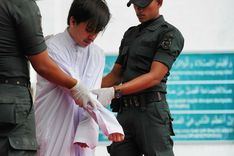 【5月23日 AFP】インドネシア・アチェ(Aceh)州の州都バンダアチェ(Banda Aceh)で23日、同性同士で性行為をし、シャリア(イスラム法)に違反したとして有罪判決を受けた男性2人に対し、それぞれ83回の公開むち打ち刑が執行された。アチェ州はインドネシアで唯一シャリアが適用されているが、同性カップルにこのような処罰が行われたのは初めて。