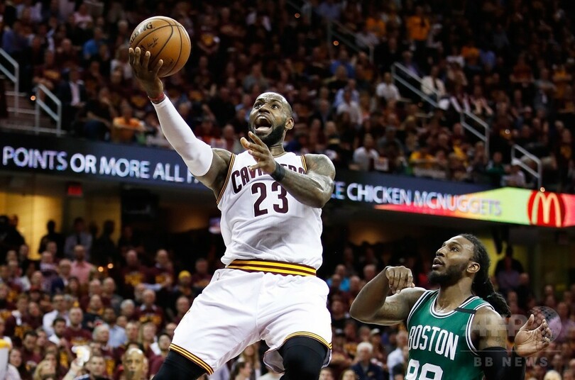 【5月24日 AFP】16-17NBAは23日、プレーオフのイースタンカンファレンス決勝(7回戦制)が行われ、クリーブランド・キャバリアーズ(Cleveland Cavaliers)はレブロン・ジェームズ(LeBron James)とカイリー・アービング(Kyrie Irving)が2人で合計76得点を稼ぎ出し、ボストン・セルティックス(Boston Celtics)を112-99で退け、ファイナル進出に王手をかけた。