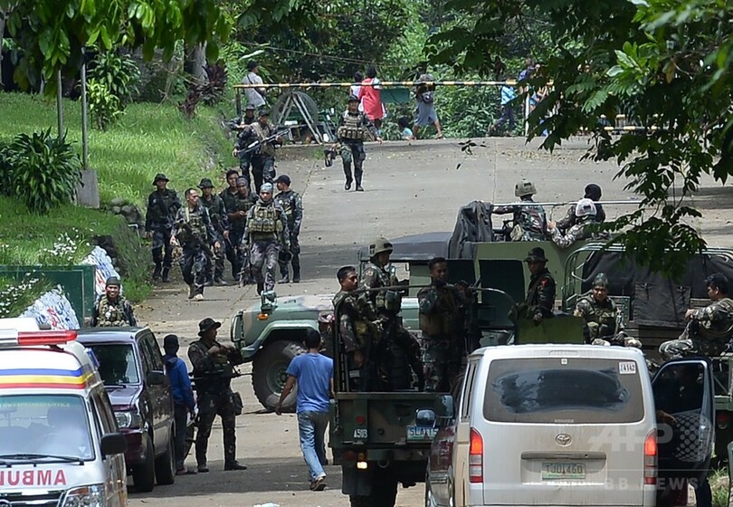 【5月25日 AFP】フィリピン南部ミンダナオ(Mindanao)島のマラウィ(Marawi)市内では25日、軍がヘリコプターや装甲車を展開し、イスラム過激派組織「イスラム国(IS)」に忠誠を誓う武装勢力との戦闘が続いている。現地からの報道によると、武装勢力は市民を殺害しているという。