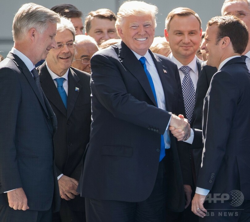 【5月26日 AFP】ドナルド・トランプ(Donald Trump)米大統領は、相手の腕を引き寄せてバランスを崩してしまうほど力強い握手で有名だが、39歳の仏政界の神童、エマニュエル・マクロン(Emmanuel Macron)大統領は、準備万端だったようだ。