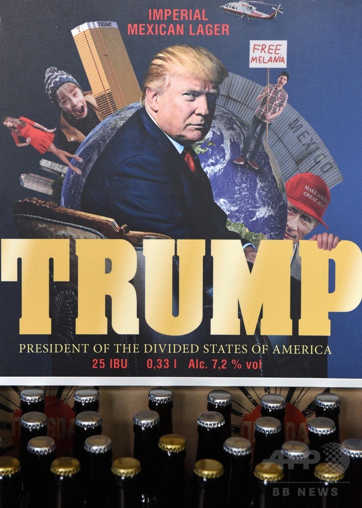 昨年の米大統領選でドナルド・トランプ(Donald Trump)氏を勝たせるために、トランプ陣営がロシアと結託したという疑惑。ウクライナ西部リビウ(Lviv)にあるクラフトビール醸造所「プラウダ(Pravda)」が、この政治スキャンダルを利用して、トランプ米大統領とロシアのウラジーミル・プーチン(Vladimir Putin)大統領をラベルに描いたラガービールを販売している。商品名は「トランプ、アメリカ分断国大統領」。