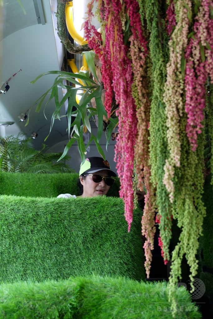 【5月27日 AFP】コケに覆われた座席、車内に青々と生い茂った植物や花々――台湾・台北(Taipei)に登場した「森林公車(フォレストバス)」は、ぎゅうぎゅう詰めの交通機関に慣れてしまった乗客たちにかぐわしく緑豊かなバスの旅を提供している。
