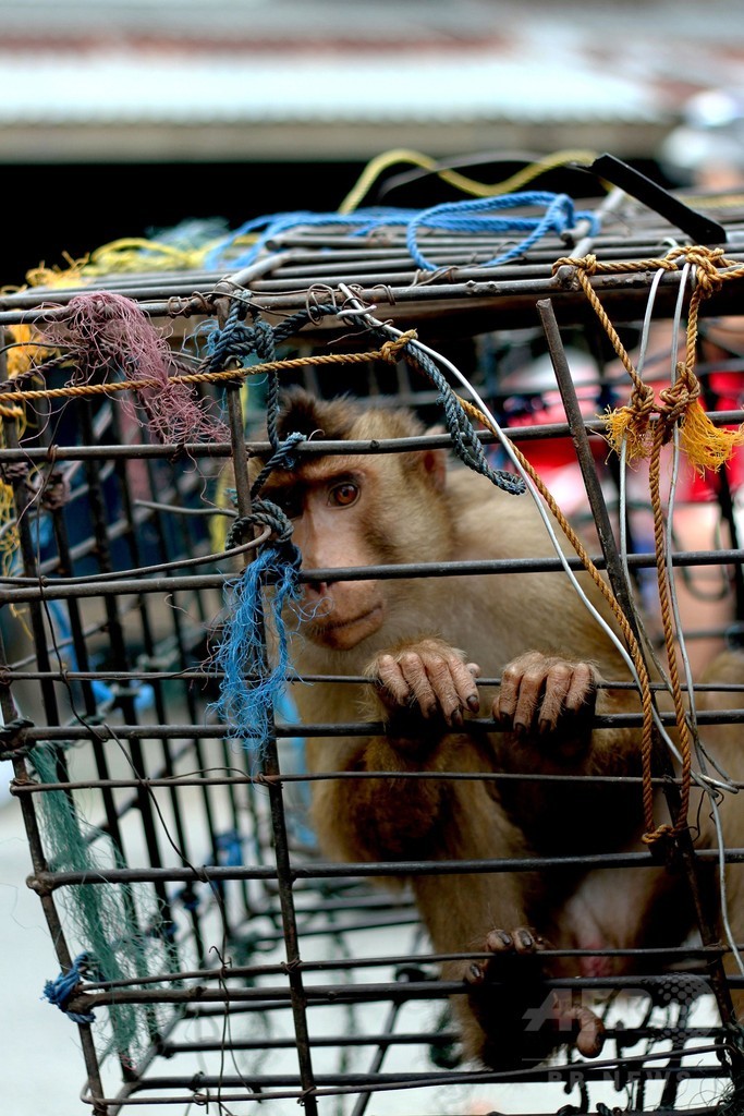 【5月27日 AFP】インドネシア・スマトラ(Sumatra)島パダン・パリアマン(Padang Pariaman)県ではココナツを取るためにサルが使われている。こうしたサルは市場で売買され、安くて8ドル(約900円)ほどだが、よく訓練された若いオスにはその10倍の値段がつくこともある。(c)AFP