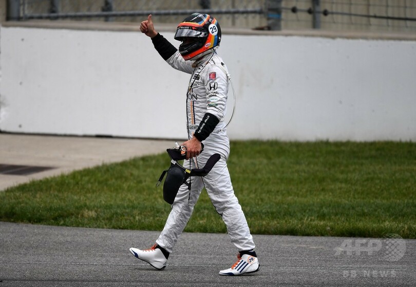 「F1のマシンであれば、誰よりも速く走れることは分かっているけれど、インディカーではどうなのかは分からなかった。こんな戦う気持ちを感じられて良かった。それにインディ500でトップに立てるなんて。1周でもトップに立つと、それだけで心地よい気分になれた」 (c)AFP