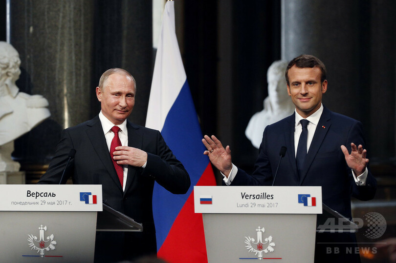 【5月30日 AFP】フランスのエマニュエル・マクロン(Emmanuel Macron)大統領は29日、パリ(Paris)郊外のベルサイユ(Versailles)宮殿でロシアのウラジーミル・プーチン(Vladimir Putin)大統領と初めて会談し、シリアやウクライナなどの問題を協議した。両者は意見の相違を認める一方、両国関係の緊張緩和を約束。マクロン氏は、協議は「極めて率直」に行われたと述べた。