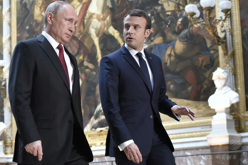 【5月30日 AFP】フランスのエマニュエル・マクロン(Emmanuel Macron)大統領は29日、パリ(Paris)郊外のベルサイユ(Versailles)宮殿でロシアのウラジーミル・プーチン(Vladimir Putin)大統領と初めて会談し、シリアやウクライナなどの問題を協議した。両者は意見の相違を認める一方、両国関係の緊張緩和を約束。マクロン氏は、協議は「極めて率直」に行われたと述べた。