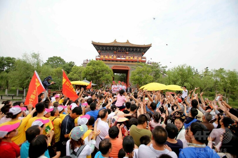 この日、「清明上河園」には1万人以上の観光客が訪れた。(c)CNS/JCM/AFPBB News
