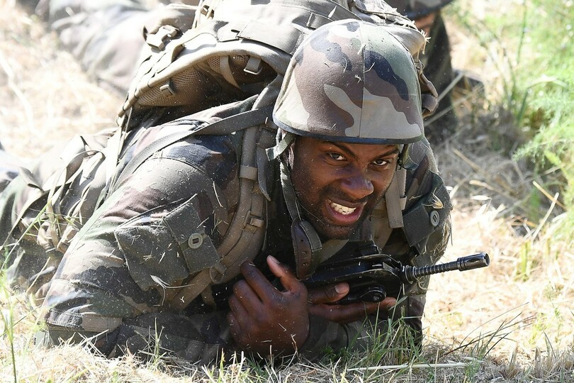 五輪の柔道男子100キロ超級で2度、世界柔道選手権の柔道男子100キロ超級と無差別級で合わせて8度の金メダルを獲得しているリネールさんは、南部マルセイユ(Marseille)近郊オバーニュ(Aubagne)の外国人部隊駐屯地で、他の階級の同国代表選手らと共に障害コースに挑み、射撃の腕を磨いた。