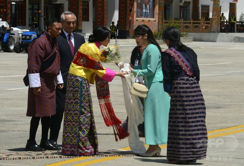【6月1日 AFP】(更新、写真追加)秋篠宮(Prince Akishino)ご夫妻の長女眞子さま(Princess Mako)は1日、公式訪問先であるブータンのパロ(Paro)にある国際空港に到着し、同国の王族らによる温かい歓迎を受けられた。