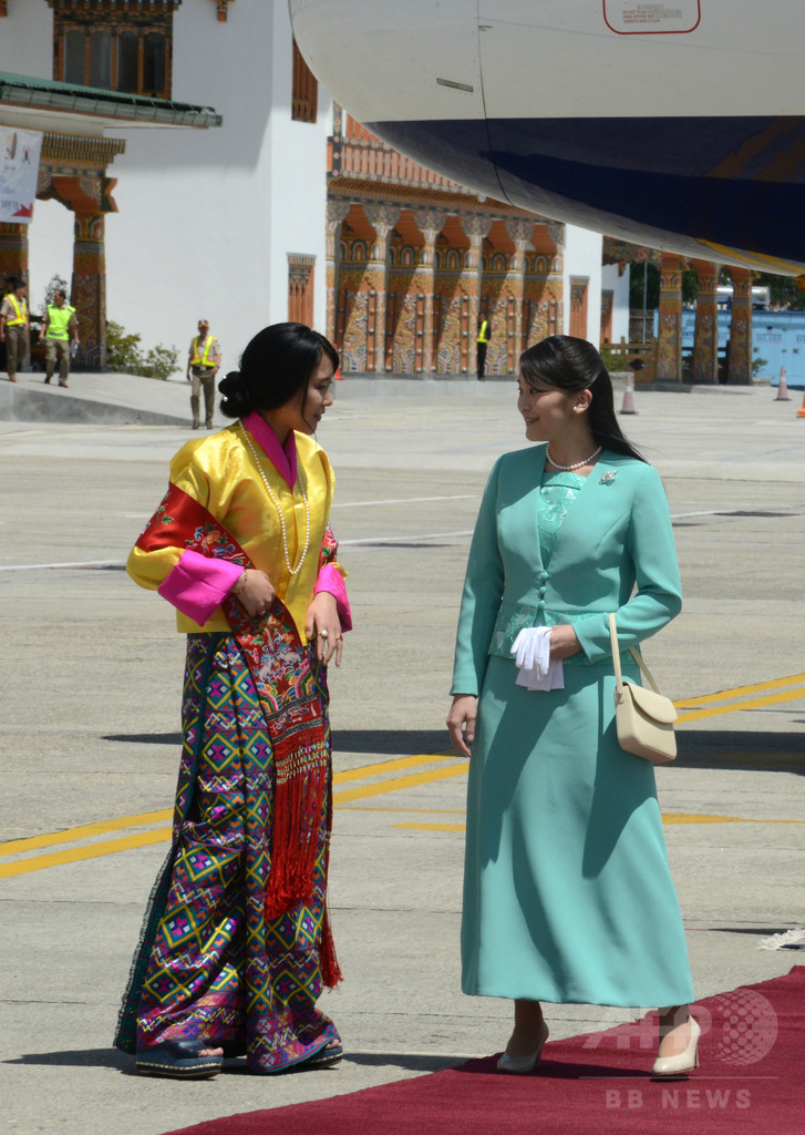 【6月1日 AFP】(更新、写真追加)秋篠宮(Prince Akishino)ご夫妻の長女眞子さま(Princess Mako)は1日、公式訪問先であるブータンのパロ(Paro)にある国際空港に到着し、同国の王族らによる温かい歓迎を受けられた。