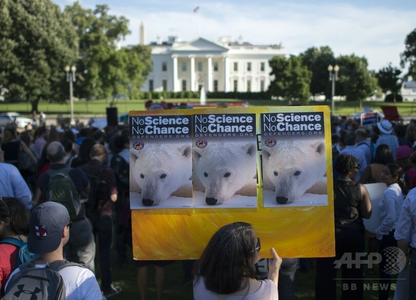 パリ協定離脱、ホワイトハウス前で抗議デモ 自治体・経済界も批判
