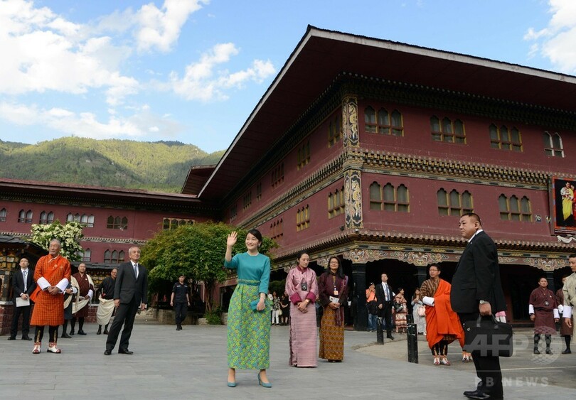 【6月3日 AFP】ブータン王室は2日、同国を公式訪問中の秋篠宮(Prince Akishino)ご夫妻の長女眞子さま(Princess Mako)が、首都ティンプー(Thimphu)にある王宮タシチョゾン(Tashichhodzong)を訪れ、ジグミ・ケサル・ナムゲル・ワンチュク(Jigme Khesar Namgyel Wangchuck)国王とジェツン・ペマ(Jetsun Pema)王妃を表敬された際の写真を公開した。