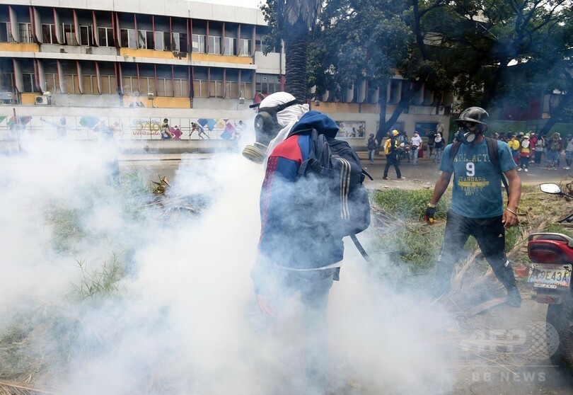 約2か月間に及んでいる反政府デモでは、デモの参加者たちと警官隊との衝突などでこれまでに64人の死者が出ている。マドゥロ政権は大きく揺れており、国際社会は懸念を示している。(c)AFP/Alex VASQUEZ